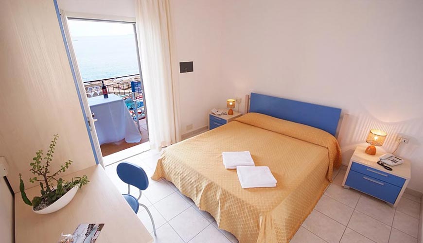 Disponiamo di stanze doppie o matrimoniali (anche per uso singolo) e familiari per 3/4 persone. La maggior parte dispone di vista panoramica sul mare, balcone o terrazza.