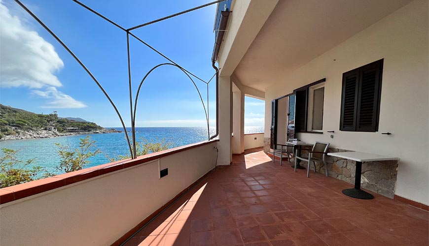 Alcune camere si trovano sul piano superiore della struttura principale e hanno un balcone o una terrazza che si affacciano su una vista mare panoramica, altre si trovano nella struttura separata (Casetta) e hanno balcone o patio privati.